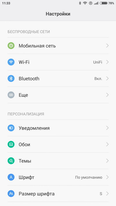 Что интересно, из Китая ко мне смартфон приехал с какой-то наикривейшей версией MIUI, где выставленный русский интерфейс воспроизводился с пробелами между любыми буквами (то есть все слова становились длиннее раза в два), так что вы представляете, какая порнография из этого получалась - делать скриншоты с такой кривости у меня не было ни малейшего желания.