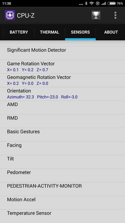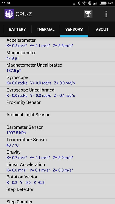 Дополнительно: акселерометр, датчик света, датчик приближения, гироскоп, компас