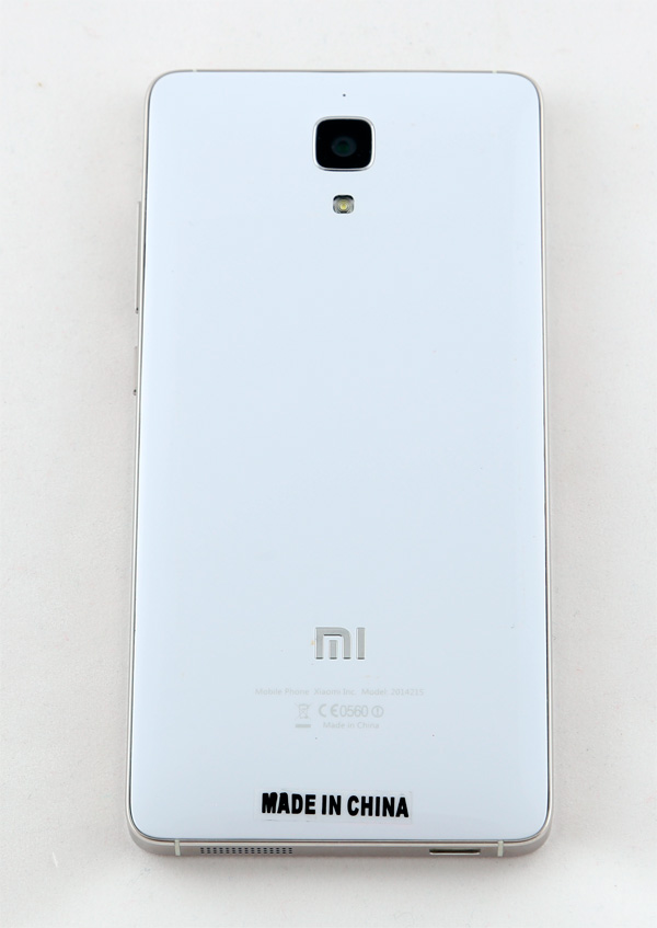 Задняя крышка Mi4 - глянцевый белый пластик. Учитывая тот факт, что крышка - несъемная, подогнано тут все идеально: нигде ничего не скрипит и не потрескивает. Но мы за это платим несъемным аккумулятором, отсутствием карты памяти и отсутствием второй сим-карты. Это дорогая цена, на мой взгляд, пусть лучше бы крышка потрескивала, но было еще два слота. (Тем более что и с несъемной крышкой люди ухитряются выкручиваться из положения, как, например, Huawei, в смартфонах которых сейчас можно выбрать - ставить вторую симку или карту памяти.)