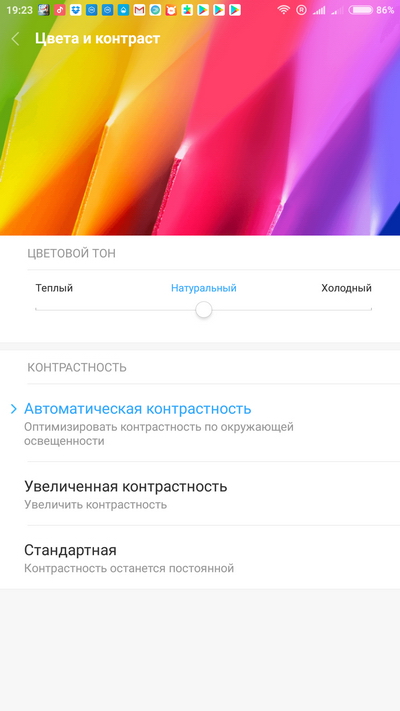 Дополнительные настройки: цветовой тон, автоматическая контрастность (кстати, очень неплохо работает, понравилось).