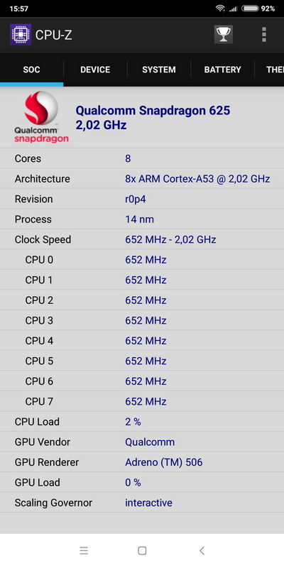 Процессор: Qualcomm Snapdragon 625, 8-ядерный, 2,0 ГГц