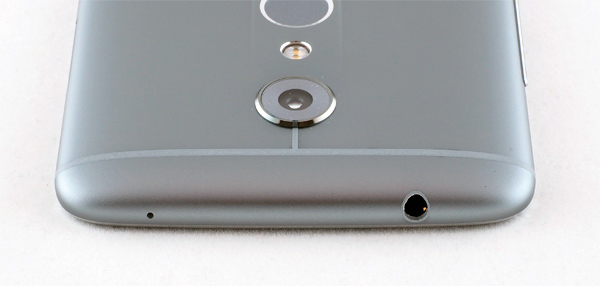 Задняя крышка металлическая, сверху и снизу идут пластиковые вставки, под которыми скрываются антенны, над (и под) которыми - пластик, окрашенный под металл. Также на задней крышке расположены слегка выступающий глазок камеры, двухсекционная вспышка и сканер отпечатка, с помощью которого также можно запускать выбранные приложения.