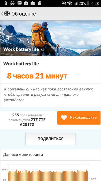 Синтетический тест PCMark - 8 часов 21 минута. То есть в режиме полной загрузки он должен нормально держаться весь день.
