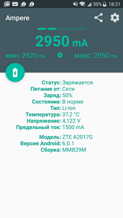 А что за програмка показивает инфу при заряде? (Там еще Ampere написано Родная от ZTE?