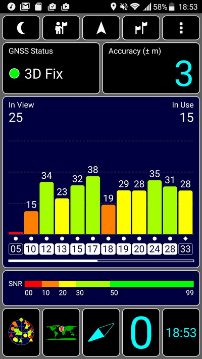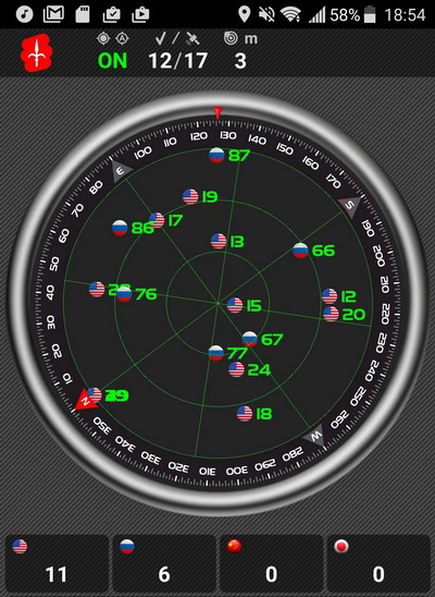 А что за программа В пункте "Определение координат"? Там где куча столбиков? А то я по недалекости не знаю как проверить сколько спутников ловит GPS. Обычно просто запускают гугл-карты и всё..