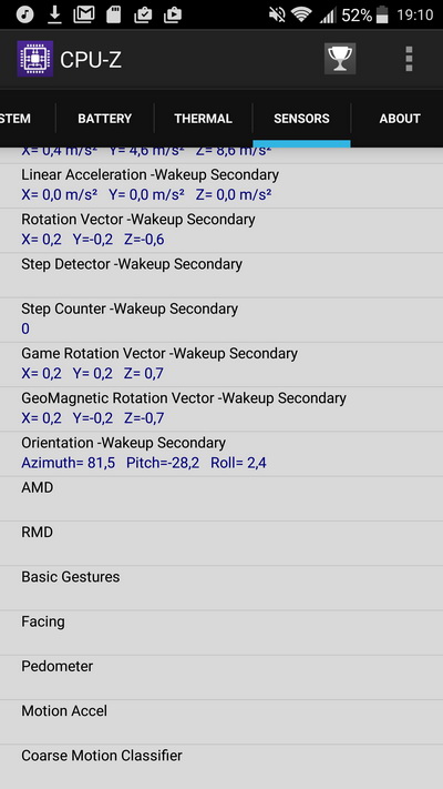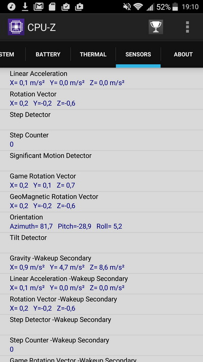 Дополнительно: акселерометр, датчик освещения, датчик приближения