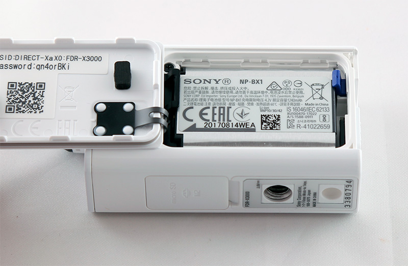 Камера без защитного бокса. Маленький дисплей служит только для настроек, для фиксации изображения служит или приложение на смартфоне, или внешний дисплей. Рядом с дисплеем расположена кнопка вызова меню и кнопки перемещения вверх-вниз по пунктам меню.