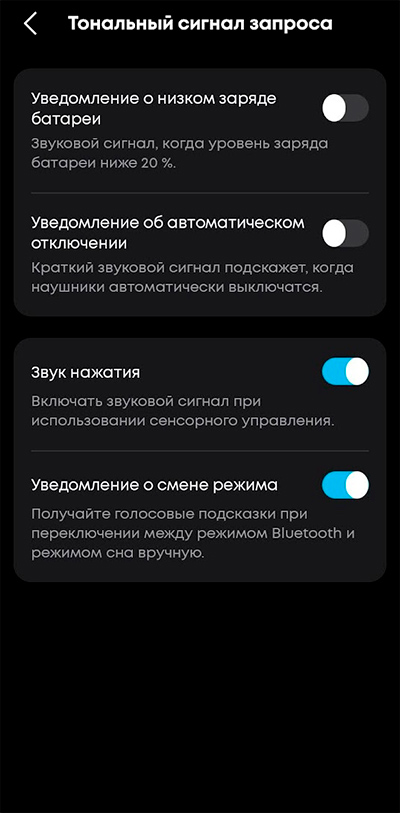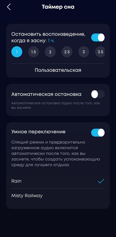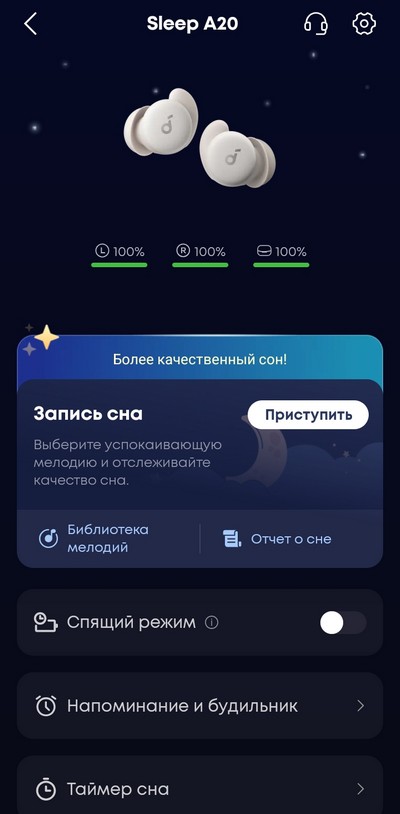 Таймер сна. Умное переключение работает грамотно, приложение само выключает наушники, когда обнаруживает, что вы заснули.