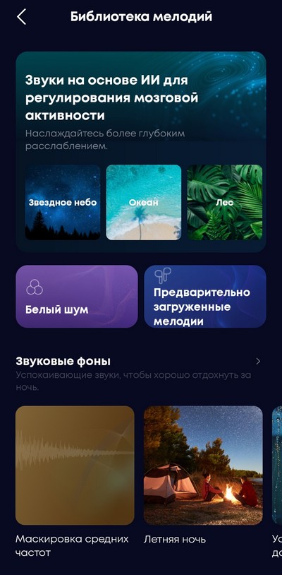Некоторое время назад ко мне на тест приезжали TWS-наушники Sanag J20S - они были предназначены для использования при засыпании. Ничего такого особенного в них не было, просто они были очень маленькие, имели ушной крючок для надежного закрепления наушника в ухе, а в приложении для этих наушников был специальный раздел со всякими планами, направленными на ускорение засыпания, звуками природы и так далее.