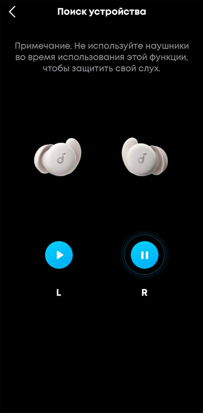 Если во сне наушник вдруг выпал, и вы его не можете найти в постели, то в приложении есть "Поиск" устройства, которое начнет подавать на потерянный наушник громкий звуковой сигнал, и вы его с легкостью обнаружите. Также здесь можно настраивать различные тональные сигналы.