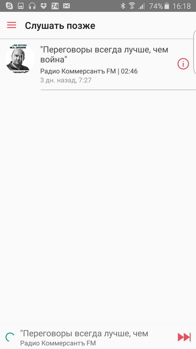 Сейчас вроде бы все поправили: сервисом можно пользоваться и в офлайновом, и в онлайновом режимах. Впрочем, мне офлановый режим нравится больше: я обычно закачиваю заранее те передачи, которые хочу послушать на прогулке, и потом их воспроизвожу.
