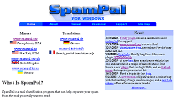Так вот, в мире существует несколько десятков, если не сотен, баз, куда заносится информация о ретрансляторах (и других точках, через которые может распространяться спам - несекьюрные прокси и так далее), причем эта информация все время корректируется и дополняется. На этом и построен принцип работы многих антиспамерских программ: они берут данные из подобных баз, анализируют поступающую корреспонденцию и помечают те письма, которые считают спамом. Лично я где-то с месяц пользуюсь одной из подобных программ (она распространяется по принципу freeware) и хочу ее вам порекомендовать. Программа называется SpamPal и найти ее можно на страничке разработчика вот здесь - www.spampal.org.
