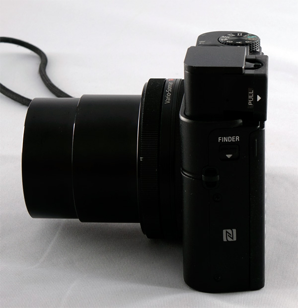 В сравнении с RX100 также отметим поворотный дисплей и, что самое интересное, видоискатель, который еще и встроен в корпус, чтобы не увеличивать его габариты, - мы ниже посмотрим, как он работает.