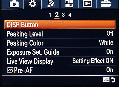 DISP Button - настройка информации, выводимой на дисплей и в видоискателе.