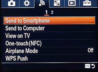 На фотоаппарате выбирается пункт Send to Smartfon (в режиме просмотра кадров это вызывается кнопкой Fn, что очень удобно), далее просто указываете, что хотите отправить - текущий кадр или выбранные.