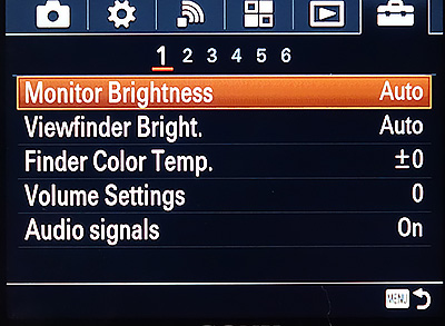 Monitor Brightness - здесь можно выставить повышенную яркость дисплея для съемки на прямом солнце. Помогает, кстати, только аккумулятор быстрее расходуется. Впрочем, на солнце намного удобнее использовать видоискатель. Да и не только на солнце.