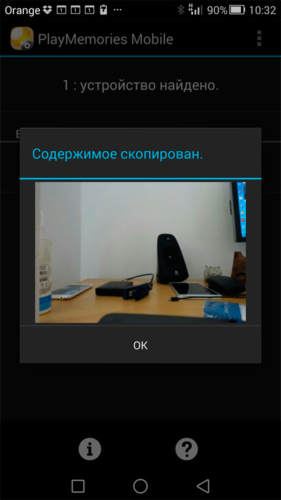 При нажатии на кнопку на дисплее смартфона фотоаппарат фокусируется по центру, фотографирует и тут же передает уменьшенную фотографию на смартфон (нормальное фото остается в фотоаппарате).