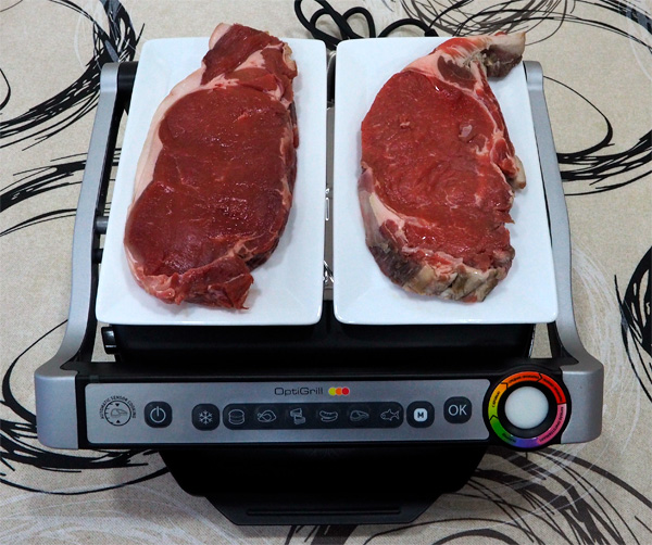 Некоторое время назад из компании Tefal предложили потестировать их гриль, который как раз умеет автоматически определять прожарку. У меня, разумеется, не было никаких принципиальных возражений, а совсем даже наоборот - самому было интересно посмотреть, как оно работает, тем более что гриль стоил вполне разумных денег - что-то там в районе 16-20 тысяч рублей на "Яндекс.Маркете" (и в районе €160 в европейском "Амазоне").