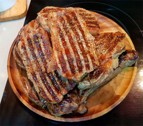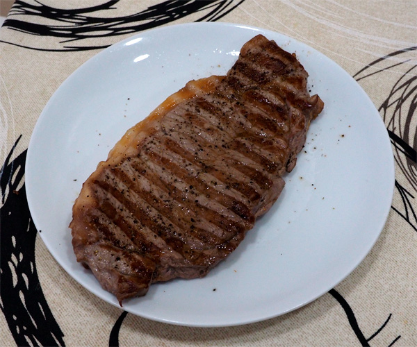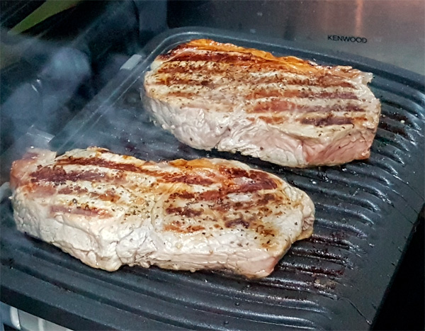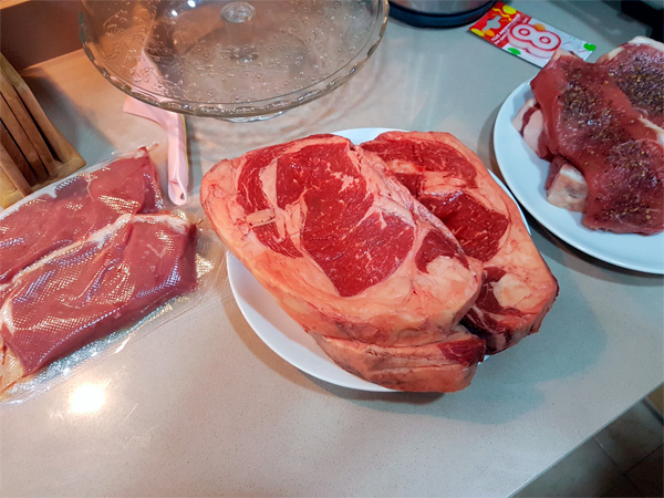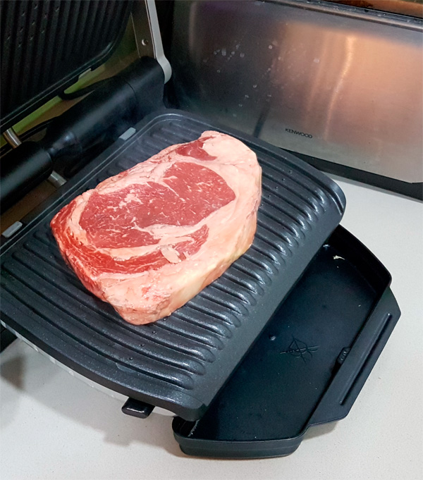 Далее гриль был проверен в боевых условиях на здоровых выдержанных рибай-стейках толщиной в два с половиной сантиметра и на также выдержанных полуторасантиметровых стейках.