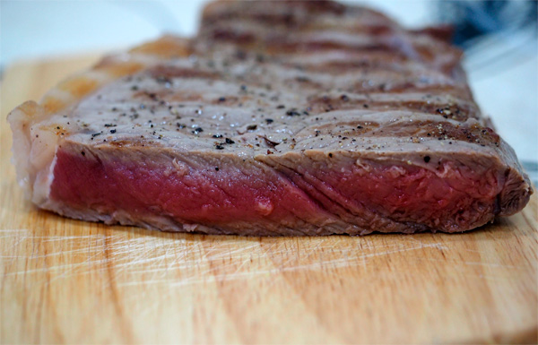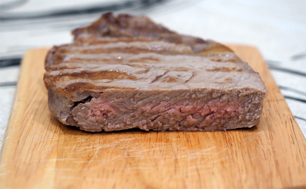 Как видите, все просто: положили продукт (в данном случае - стейк), дождались определенного цвета на индикаторе, вытащили продукт. Теперь можно посолить-поперчить.