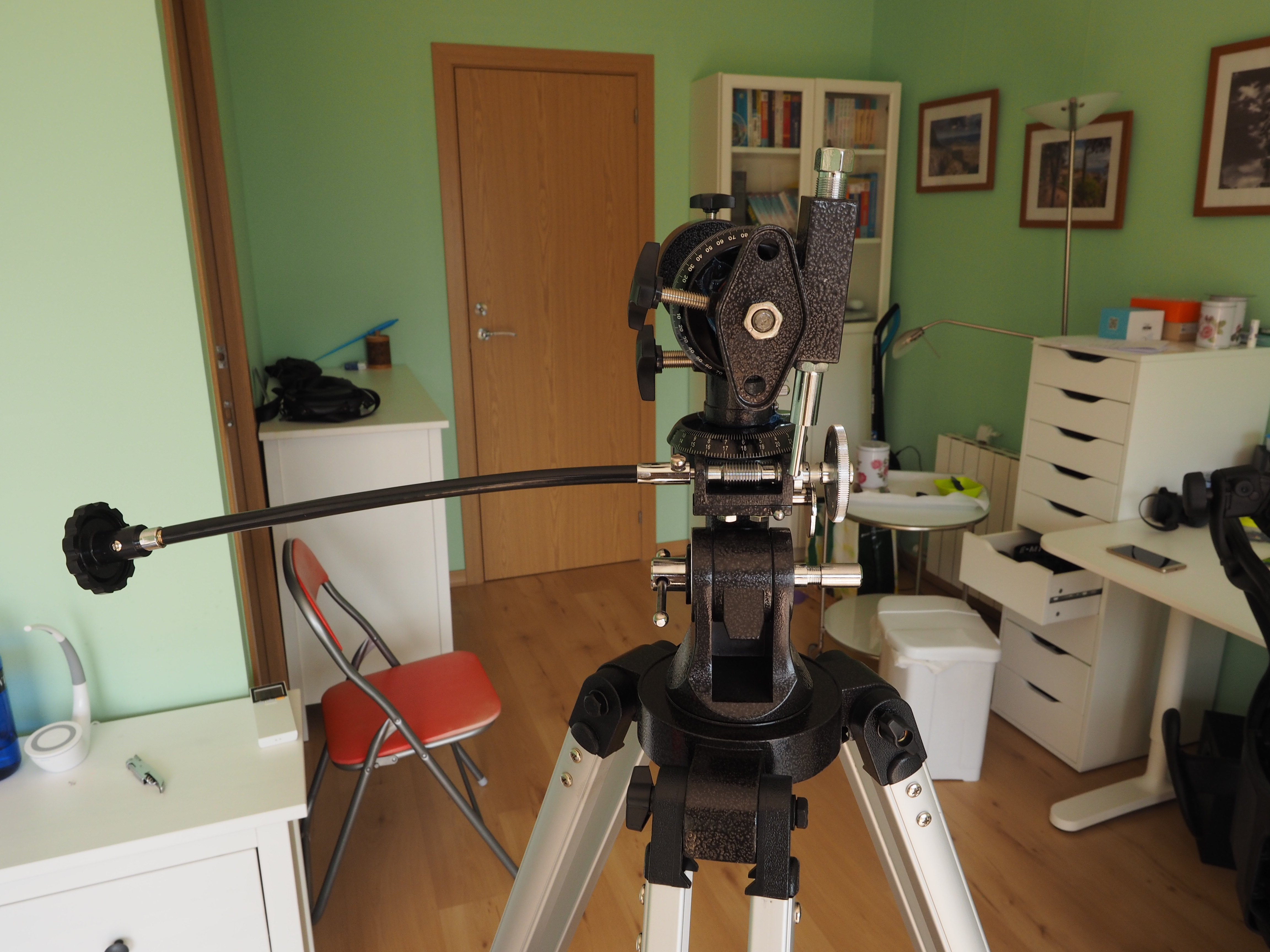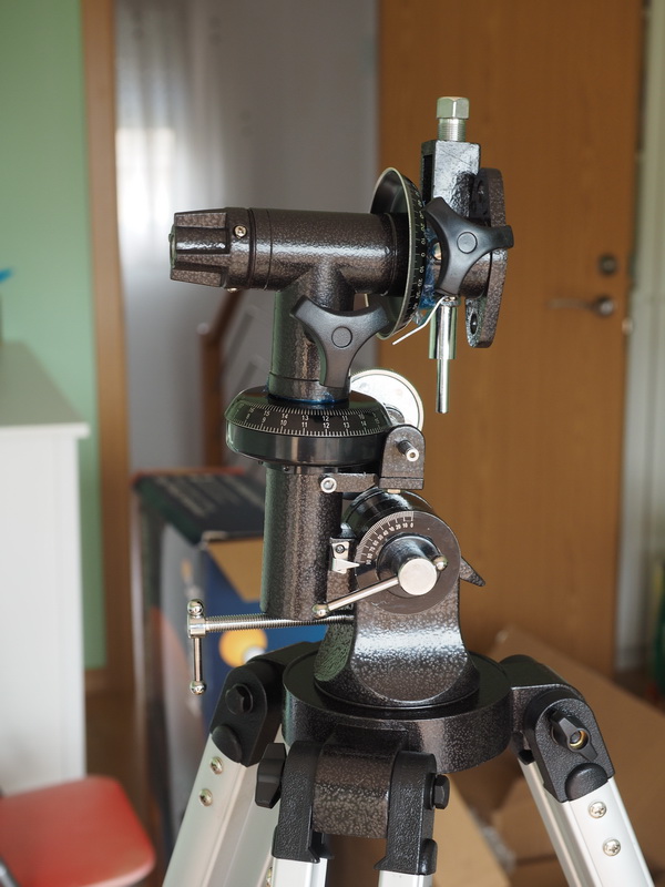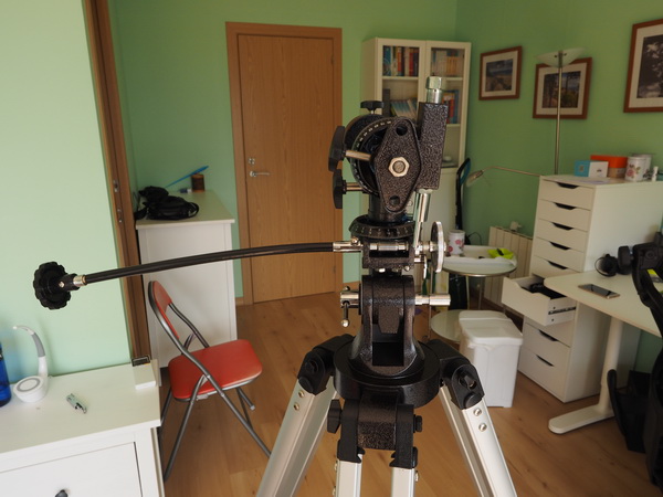 Устанавливаем монтировку. Как следует из документации, это экваториальная монтировка немецкого типа EQ-2. Такой тип монтировки удобен для наземного наблюдения за небесными объектами. Если точно выставить ось прямого восхождения, то можно скомпенсировать вращение земного шара вращением всего одной ручки. А вот для наблюдения за наземными объектами такой тип монтировки неудобен.