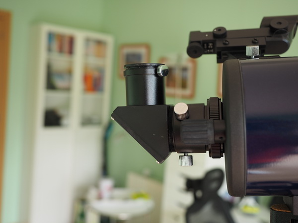 Устанавливаем диагональное зеркало - оно нужно для удобства наблюдений за небом. Для наблюдения за наземными объектами зеркало убирается.