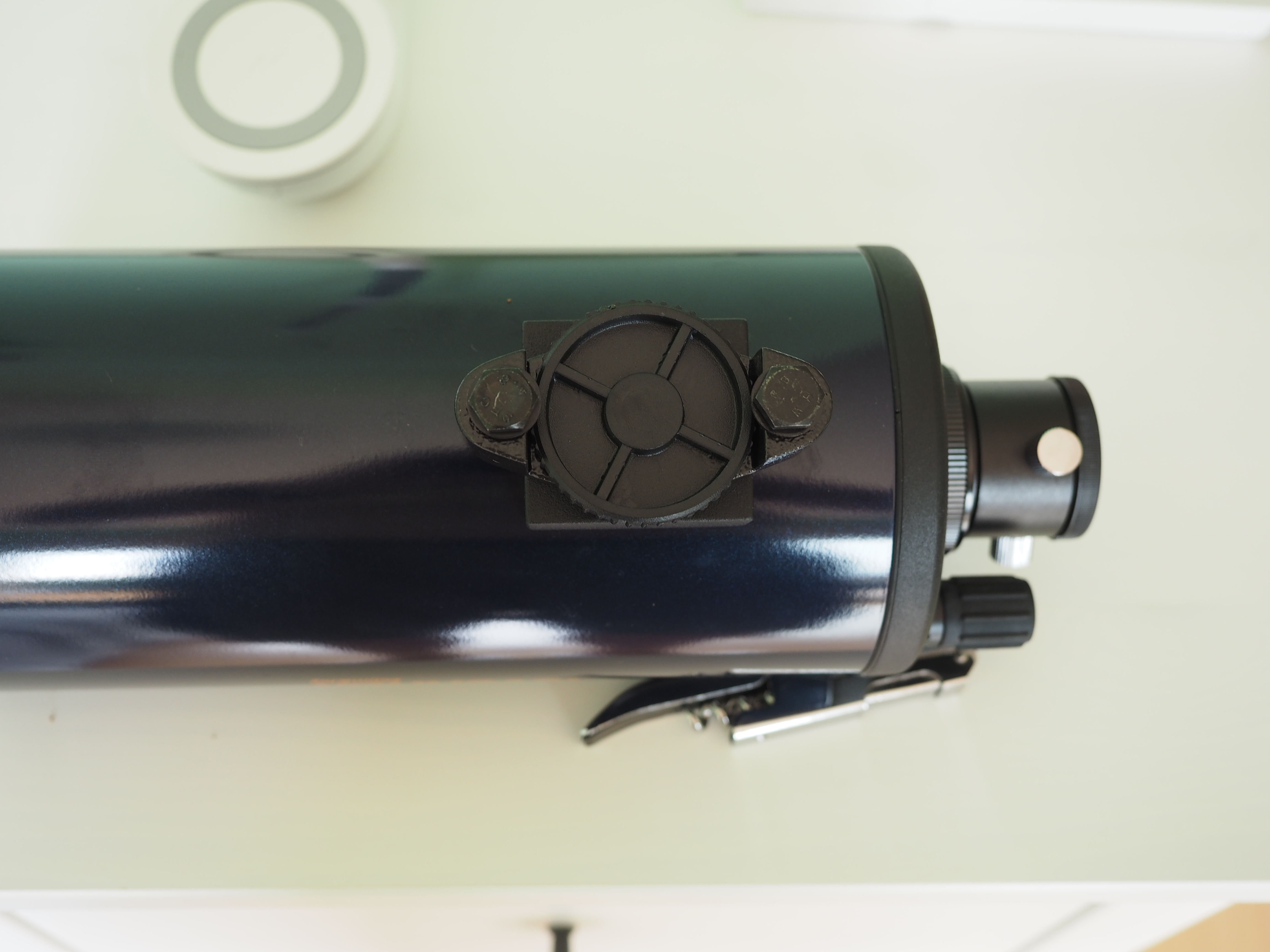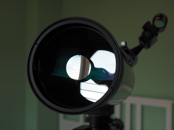 Заглядываем в телескоп - видна оптическая система: главная линза и мениск.