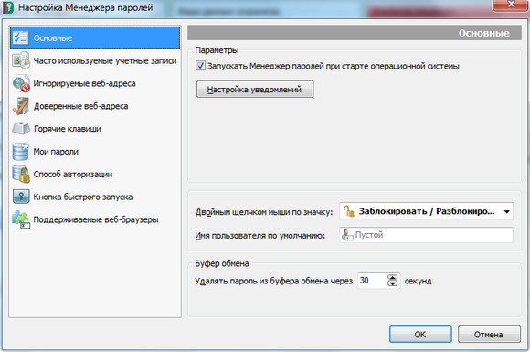 Менеджер обладает достаточно широкими возможностями. Он может запускаться при старте системы (разумеется, требуя ввода специального мастер-пароля), позволяет вести различные учетные записи, хранить массу данных в виде электронной визитки (эти данные будут нужны при заполнении различных форм), работает с горячими клавишами, умеет игнорировать заданные адреса, может менять алгоритм шифрования вплоть до 3DES 168 бит, сохраняет защищенную резервную копию пользовательских паролей и так далее и тому подобное.