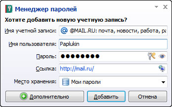 При первом вводе пароля возникает окно, предлагающее сохранить введенные данные, чтобы они в дальнейшем вводились автоматически.
