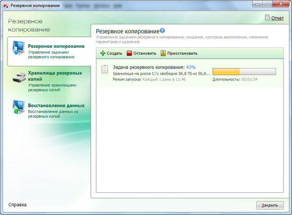 В модуле резервного копирования можно просматривать и редактировать все имеющиеся задачи, управлять хранилищами и восстанавливать данные.