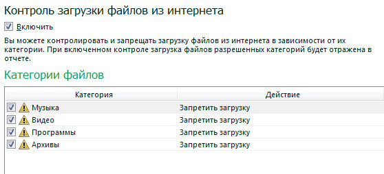 3. Контроль загрузки файлов из Интернета - можно ограничить по категориям.
