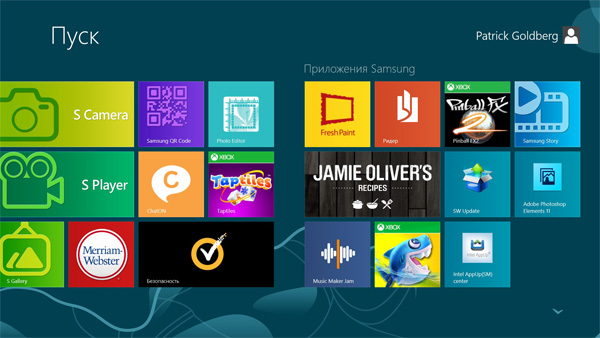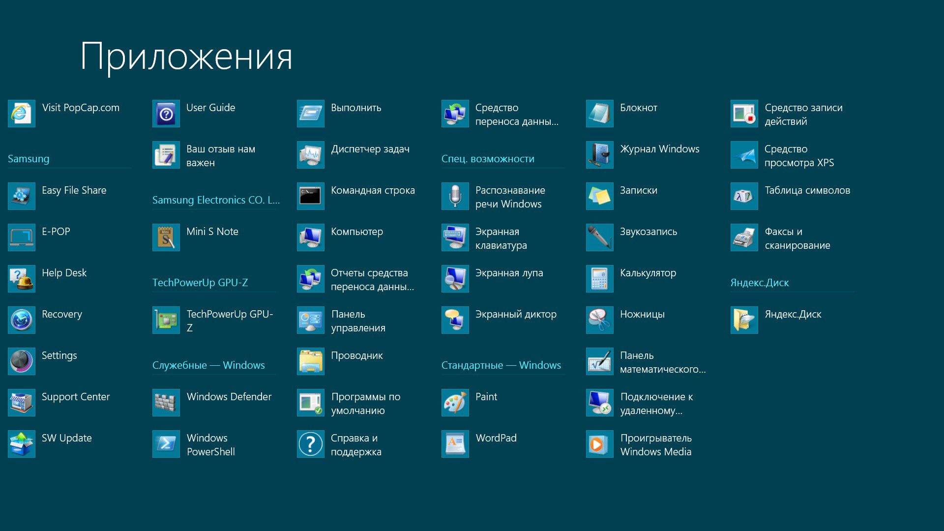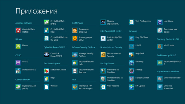 Вот полный набор выведенных на десктоп приложений под плиточный интерфейс.