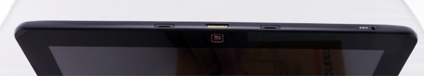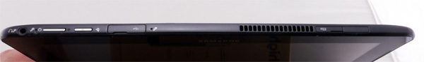 Вообще, с пользовательской точки зрения размещение USB и входа наушников в верхнем торце - решение более чем странное. Ими-то и в режиме планшета сложно пользоваться, а уж когда планшет вставлен в клавиатуру - это выглядит совсем как-то криво. Вот представьте, что у вашего ноутбука вход наушников и USB-вход расположены на верхнем торце. Душераздирающее зрелище, не так ли?