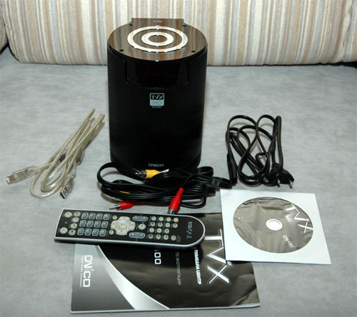 В комплект поставки кроме самого устройства входят сетевой шнур, кабель USB, аудиокабель, инструкция и пульт управления. В моей модели был встроен жесткий диск на 500 Гб, также встречаются варианты с 750 Гб и с терабайтным диском.