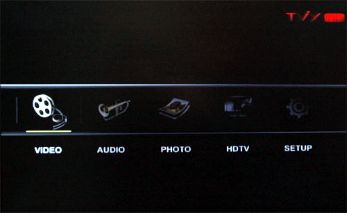 Стартовое меню TviX-HD особым разнообразием не отличается - Video, Audio, Photo, HDTV, Setup.