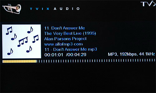 Единственное, чего здесь не хватает человеку, избалованному компьютером в качестве медиаплеера, - запоминания точки просмотра ролика и возможности перематывать вперед-назад на установленное число минут. Впрочем, в TViX-HD на пульте есть специальная кнопочка GoTo, позволяющая установить фильм на заданную временную метку в часах, минутах, секундах, которая частично данную проблему решает. Кроме того, есть кнопка Bookmark, которая позволяет ставить закладки в фильмах, аудиотреках.