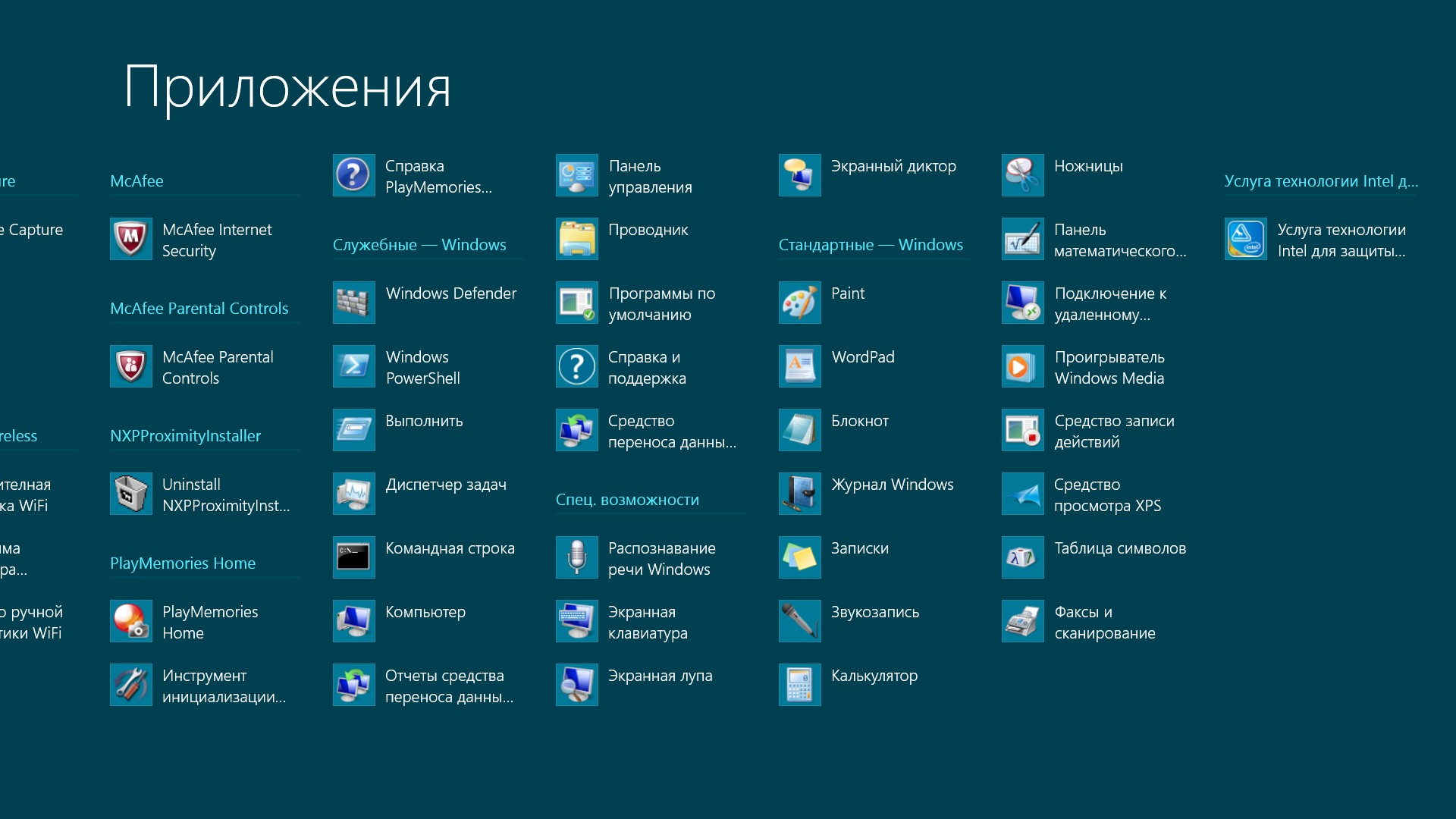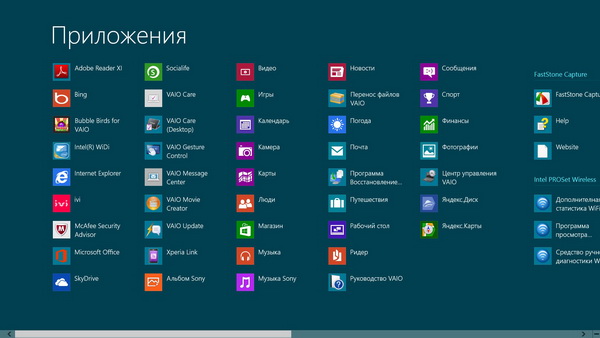 Установленые в системе приложения. Кстати, традиционного барахла, которое потом приходится сносить, здесь не так уж и много.