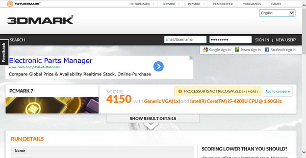 Тест PCMark 7 дал тут 4181 единицы (подробности). Для сравнения, Lenovo Ideapad YOGA 13 - 4245 единицы, Acer Aspire S7 - 4458.