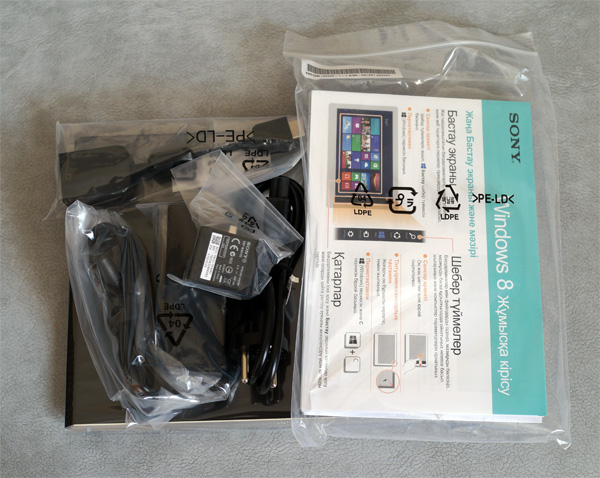 Комплектация: ультрабук, адаптер питания, беспроводной/Ethernet мини-маршрутизатор, брошюрки.