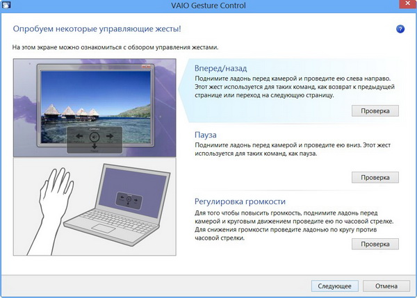 Управляющие жесты. Любопытная технология, использующая встроенную веб-камеру. С ее помощью можно управлять некоторыми функциями воспроизведения не прикасаясь к экрану - просто жестами рукой. (Как с игровым контроллером Kinect.)