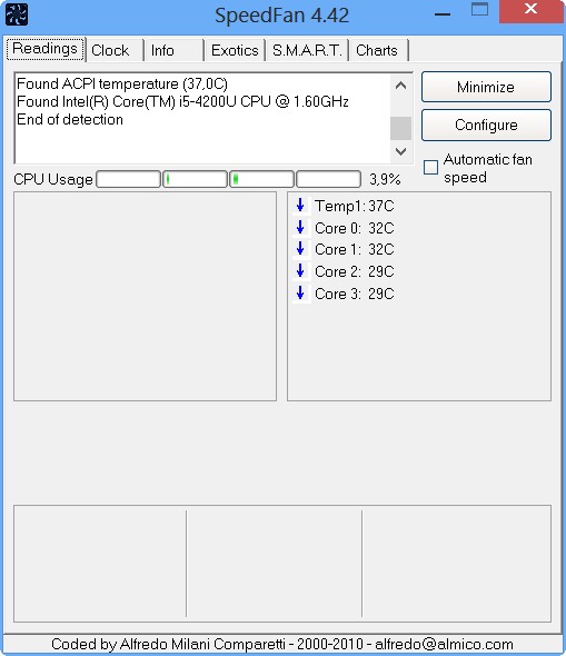 Измерил температуру процессора и материнской платы под стандартной нагрузкой (работа в браузере).