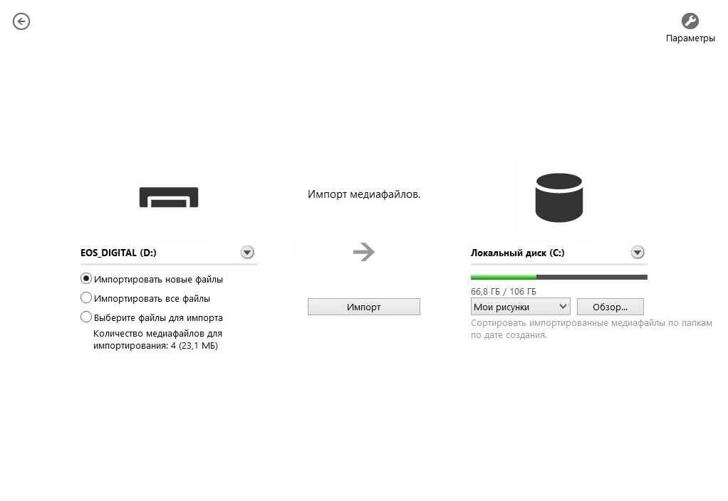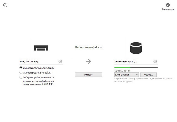 Импорт медиафайлов - когда в слот вставляется SD-карта, появляется вот такое приложение импорта медиафайлов.