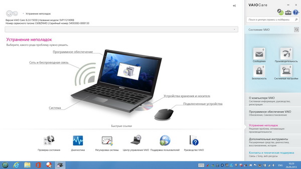 VAIO Care - фирменная система диагностики и настройки системы. Может также вызываться кнопкой Assist.