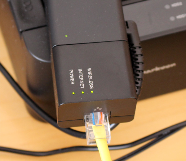 В комплект ультрабука входит вот такой мини-маршрутизатор. Я сначала подумал, что это обычный переходник USB-Ethernet и не мог понять, почему он такой странной формы: его не воткнешь в порт ультрабука.