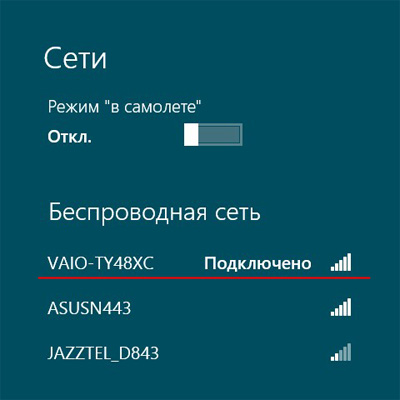 В маршрутизатор втыкается кабель Ethernet, после чего среди доступных беспроводных сетей появляется сеть VAIO-TY48XC, к которой можно присоединиться. (Паролится сеть нажатием кнопки WPS на маршрутизаторе.) И все, у вас есть беспроводной Интернет, к которому можно подключить несколько устройств.
