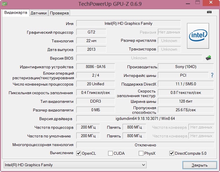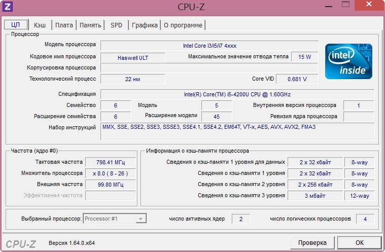 Процессор: Intel Core i5-4200U 1,6 ГГц