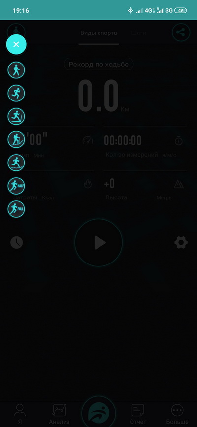 В программе заложены различные виды тренировок, но часы это не поддерживают - только шаги.