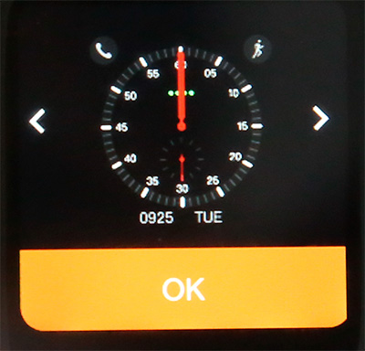 Длинное нажатие на циферблат - как обычно, выбор циферблата. Вариантов с десяток, они очень так себе.