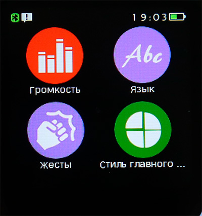 Громкость динамика, язык (русский, как видно из скриншотов, включен), настройка жестов и стиль экрана приложений.