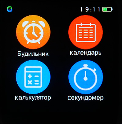 Еще приложения - будильник, календарь, калькулятор, секундомер. Работают, как полагается.